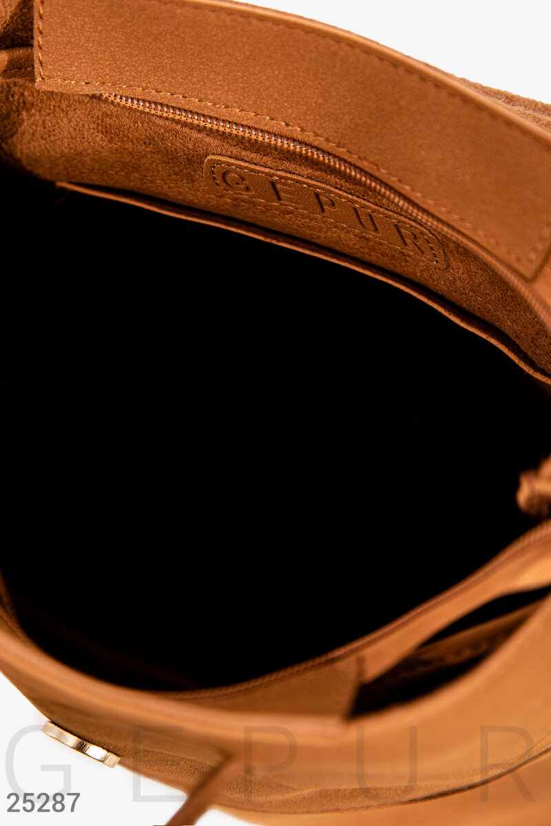 Очень классный, вместительный рюкзак. Цвет как на фото, ткань напоминает нубук. Можно носить как на двух плечах, так и вытянуть лямку на одно плечо (как сумку), что очень удобно. Рюкзак этот очень люблю, спасибо Гипюр.