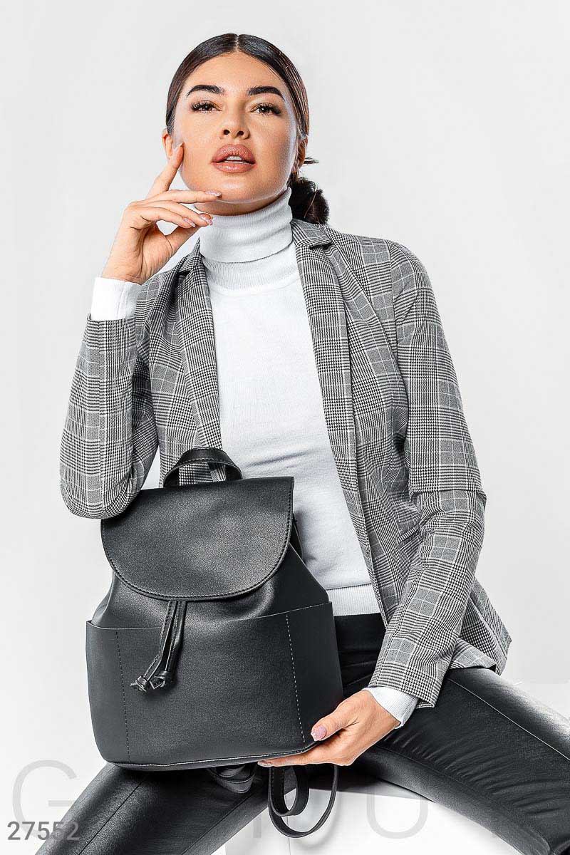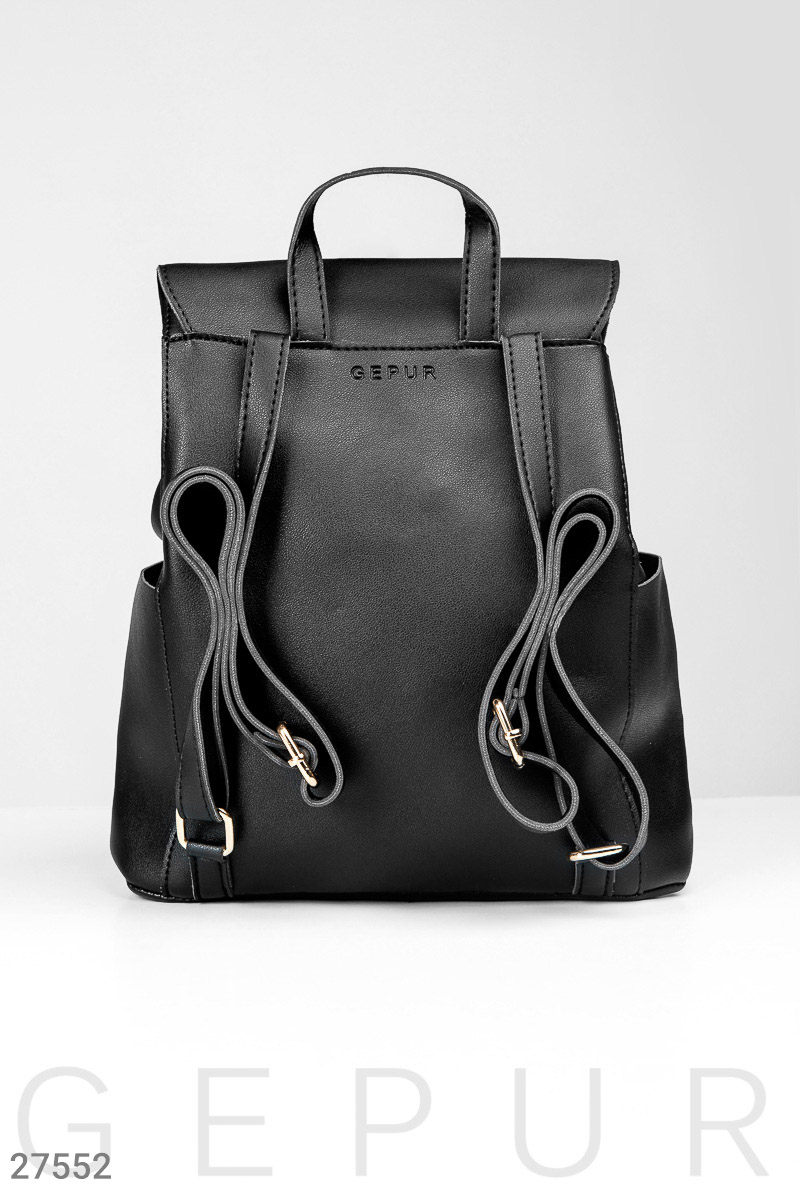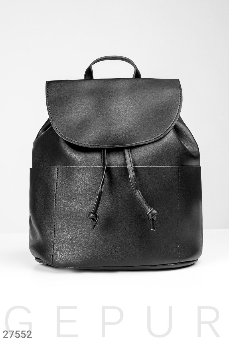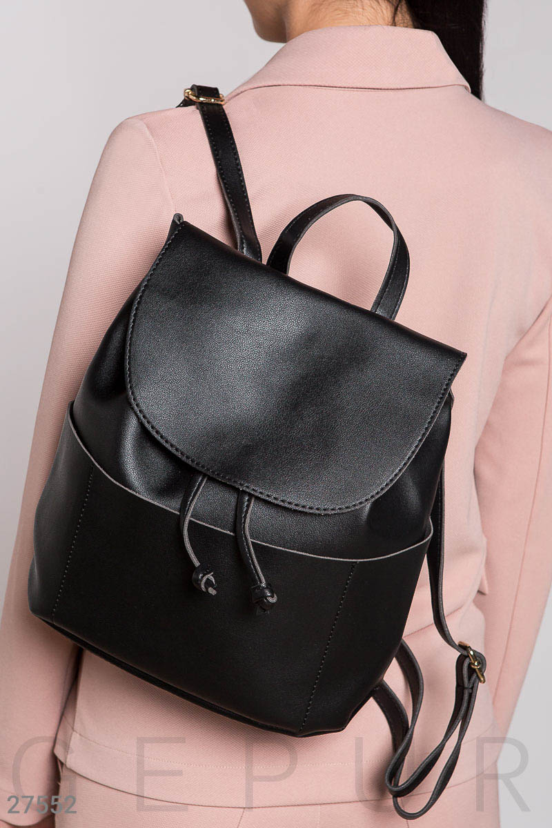 Из минусов - грубая эко-кожа, трудно затянуть завязки и закрыть клапан.