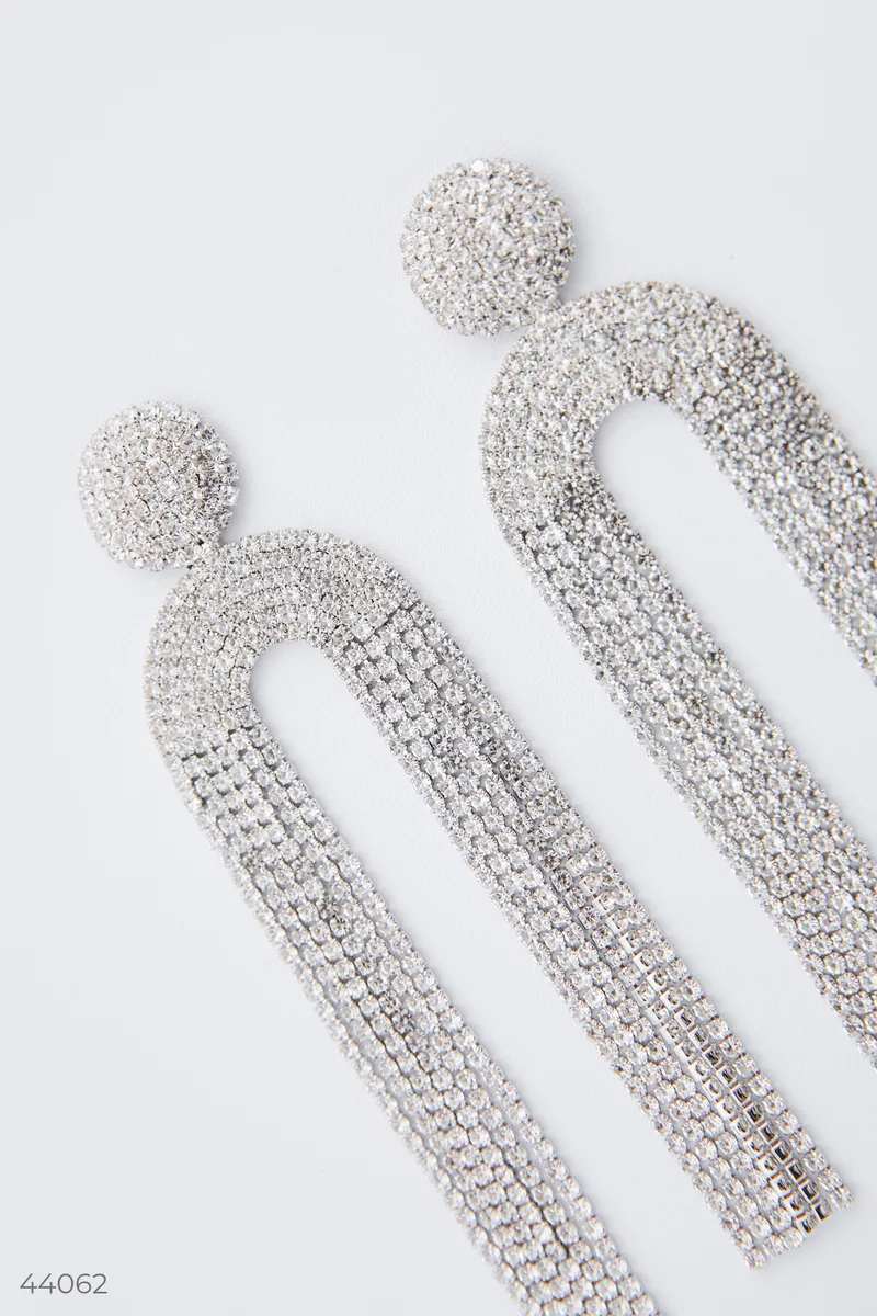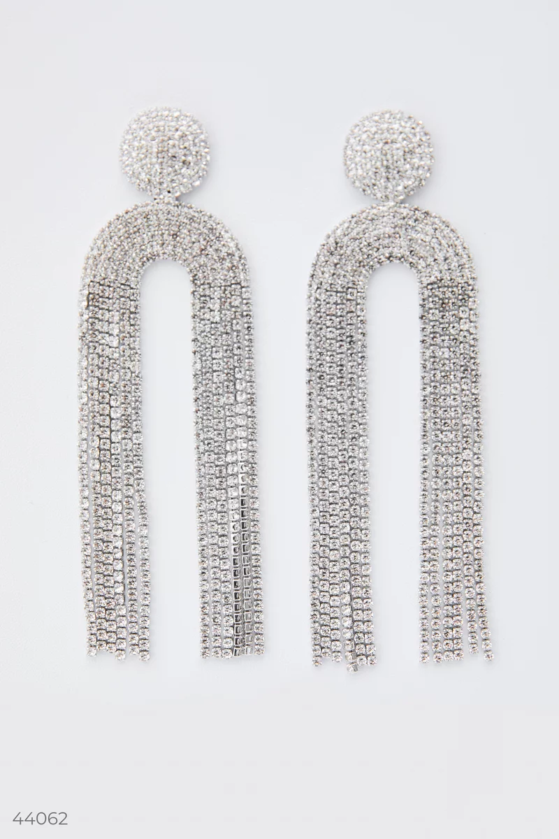 Ефектні об'ємні сережки для вечірнього образу, оздоблені декоративним камінням. Виконані з якісного біжутерного сплаву, при правильному догляді не темнішають і довго служать. Покриття не стирається, не окислюється і залишає сліди на шкірі. Основа виробу у сріблястому кольорі. Зберігайте біжутерію в закритій скриньці, органайзері або шафці в розправленому вигляді.