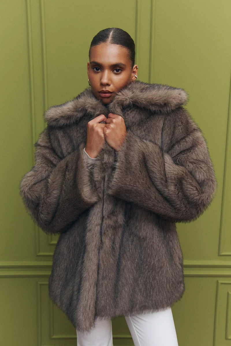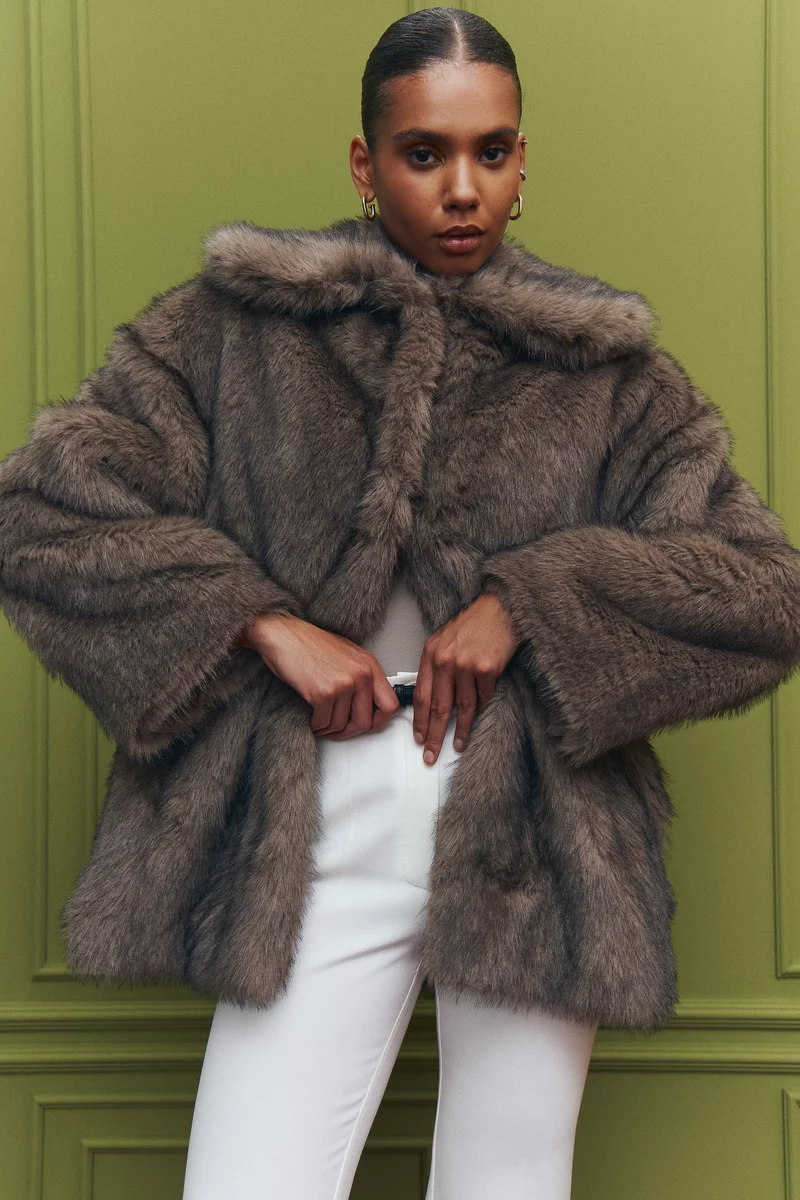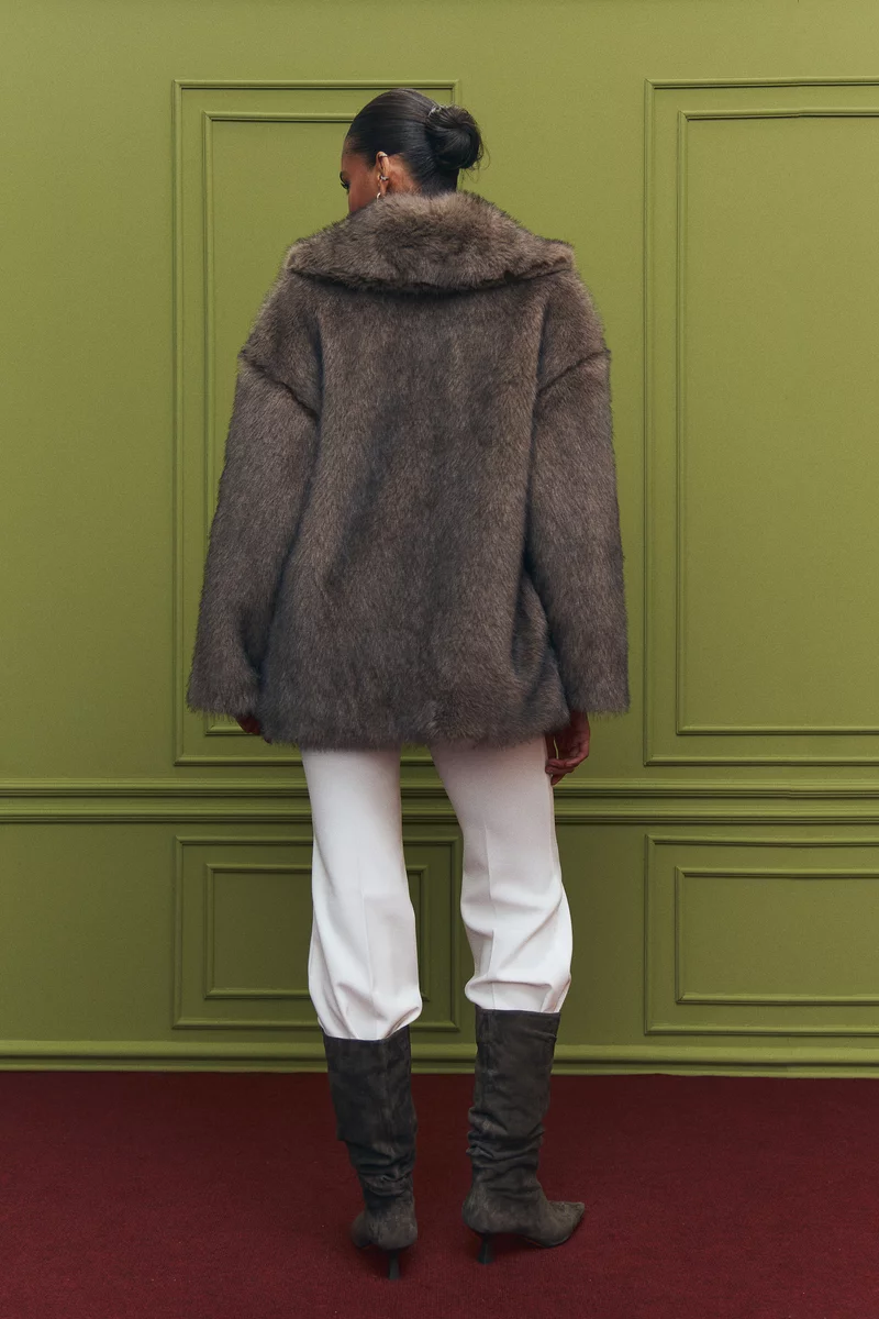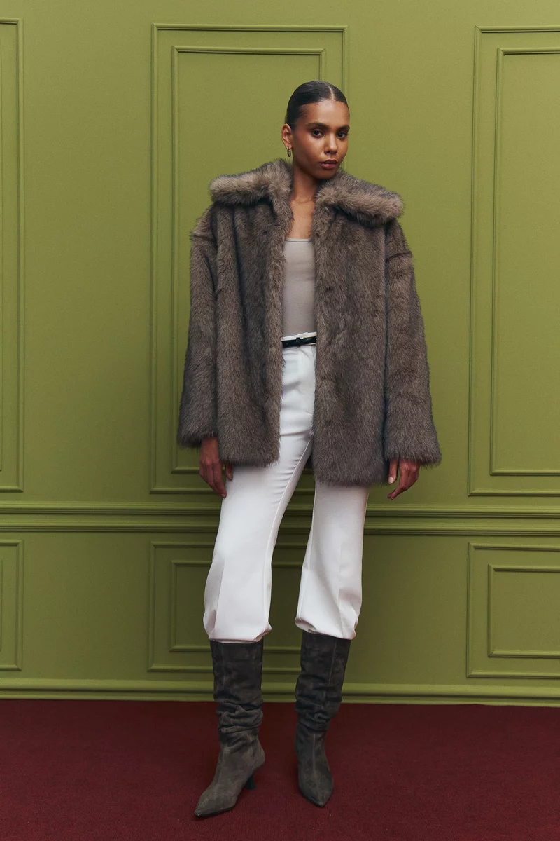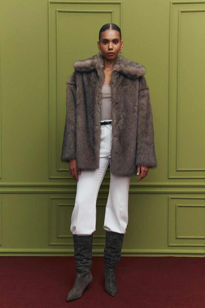 Подовжене пальто із м'якого, об'ємного штучного хутра доповнить твої стильні образи. Модель із прямим довгим рукавом та відкладним коміром. Застібається на гачки. На підкладці