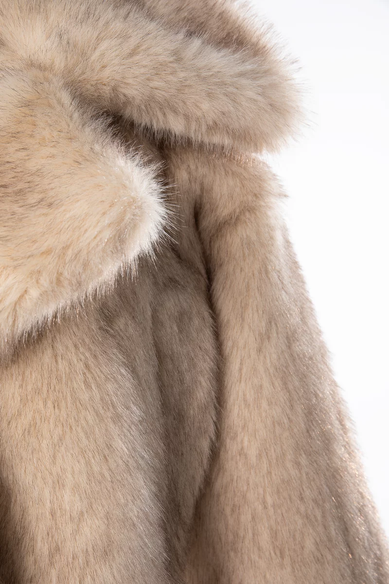 Коротке пальто із м'якого, об'ємного штучного хутра доповнить твої стильні образи. Модель із прямим довгим рукавом та коміром з лацканами. Застібається на кнопки. На підкладці