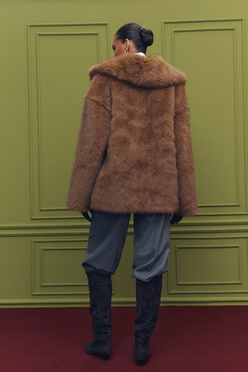Подовжене пальто із м'якого, об'ємного штучного хутра доповнить твої стильні образи. Модель із прямим довгим рукавом та відкладним коміром. Застібається на гачки. На підкладці