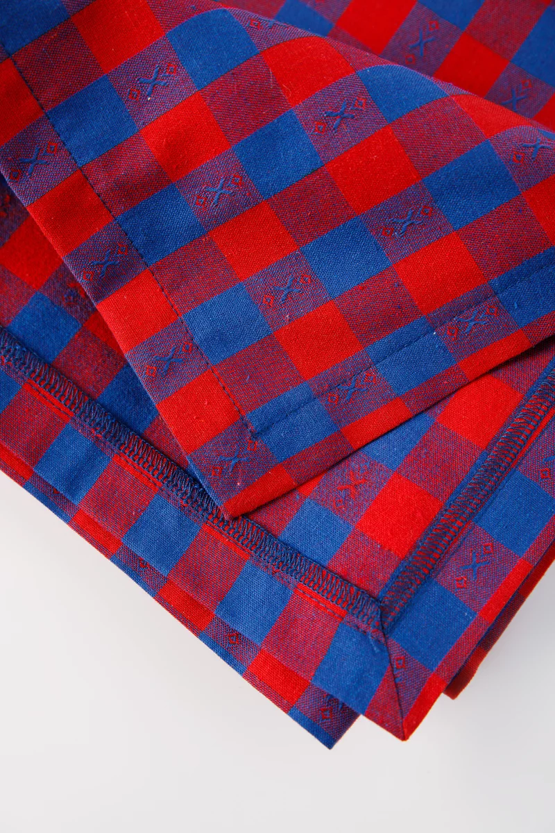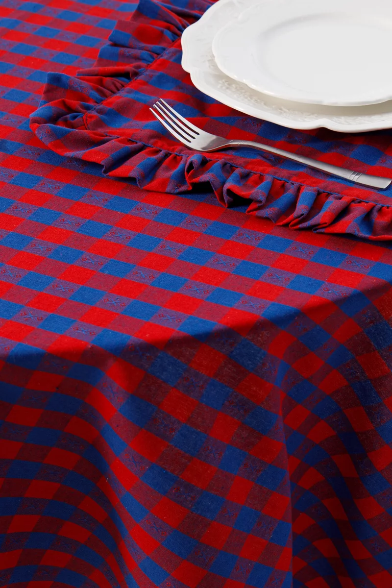 Червоно-синя скатертина з принтом у клітинку 140х220 см