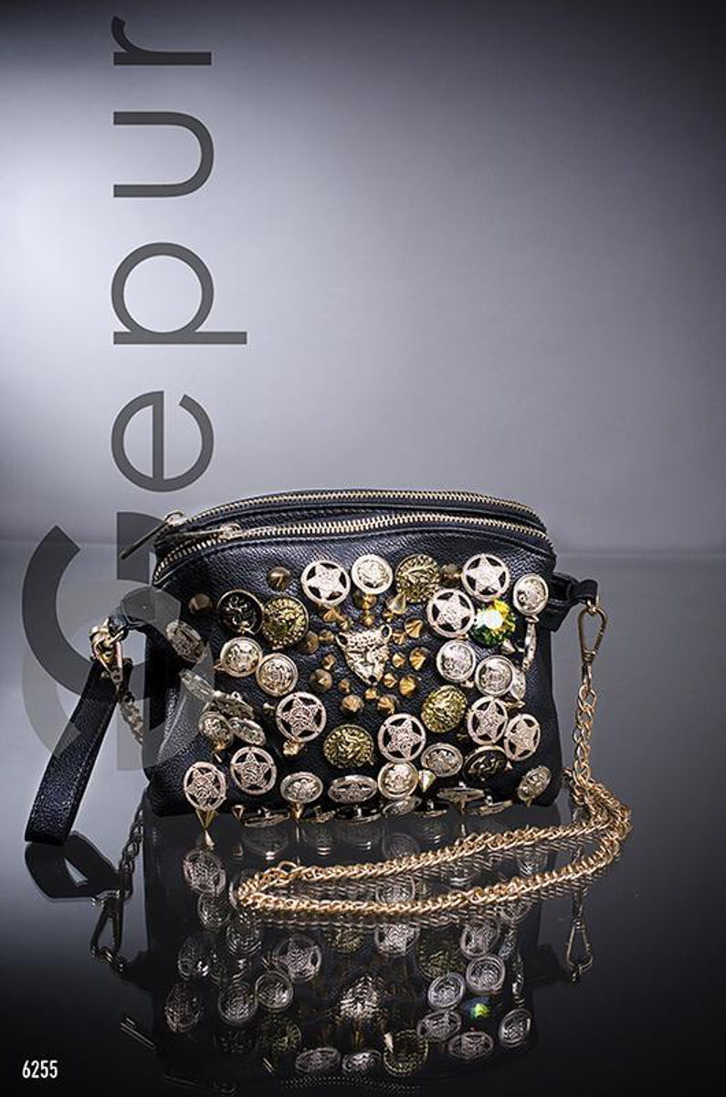 Сумка с пуговицами и бусинами на длинной съемной ручке-цепочке, два отделения на змейках. Кармашек для мобильного и кармашек на змейке для мелочи. На боковой стороне карман на змейке.