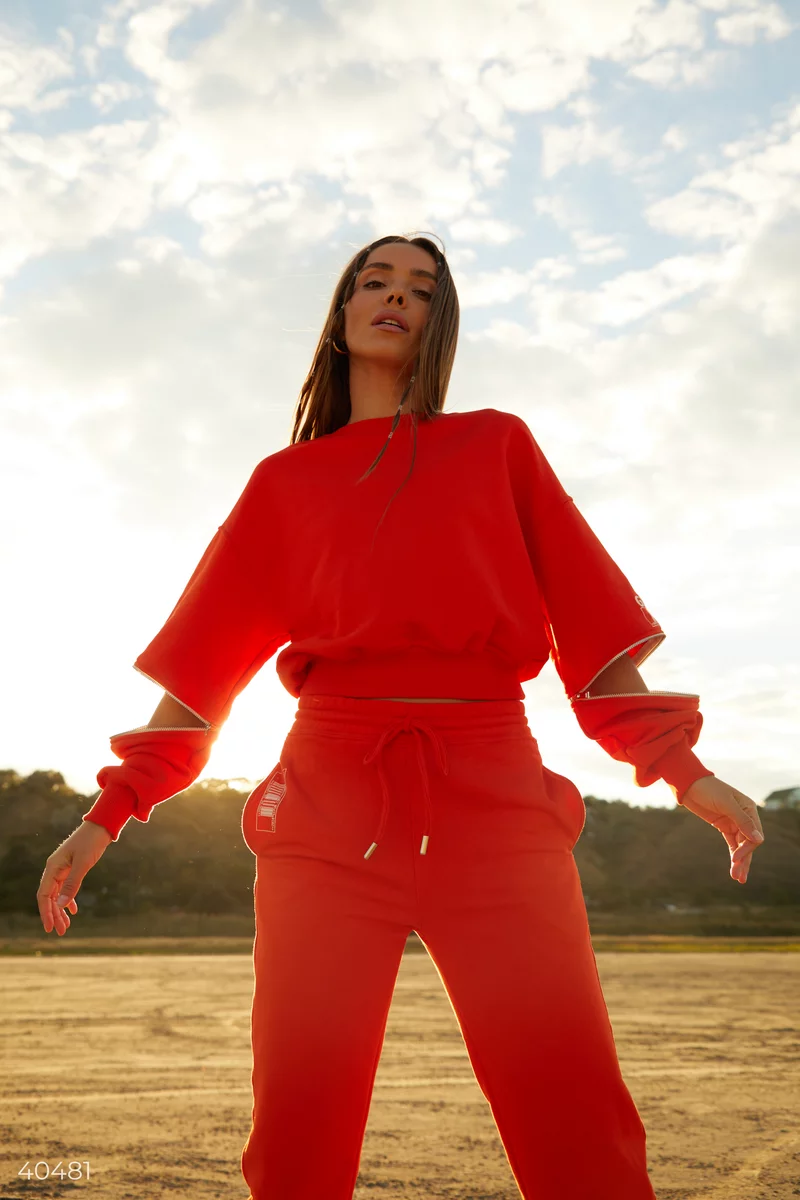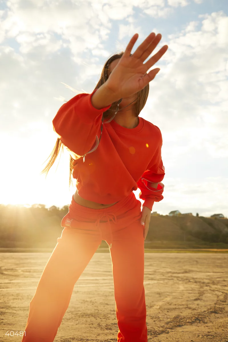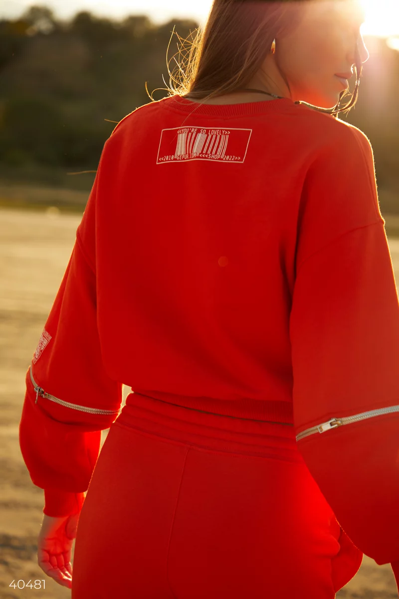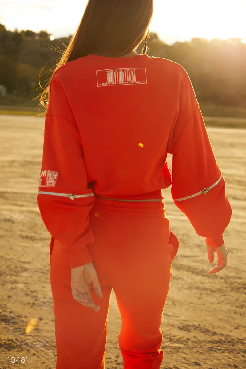 Яскравий помаранчевий світшот, виконаний із сумішевої бавовни. Модель стилізована дизайнерами Gepur блискавками на рукавах, які дозволяють додати моделі родзинку, розстебнувши їх частково або повністю. Такий світшот відмінно виглядатиме з джинсами, або трендовими спідницями, що плісують.