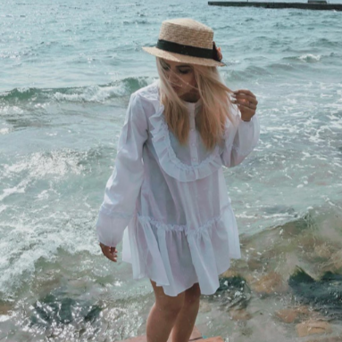 Платье красивое очень, но ОЧЕНЬ короткое. Мои размеры 89-67-90, рост 172. Брала М-ку. Все хорошо отлично подошло, кроме длины. Идет прямо на уровне ягодиц, только если с плотными легенсами, но я так и смогла подобрать к нему. Пришлось отдать.